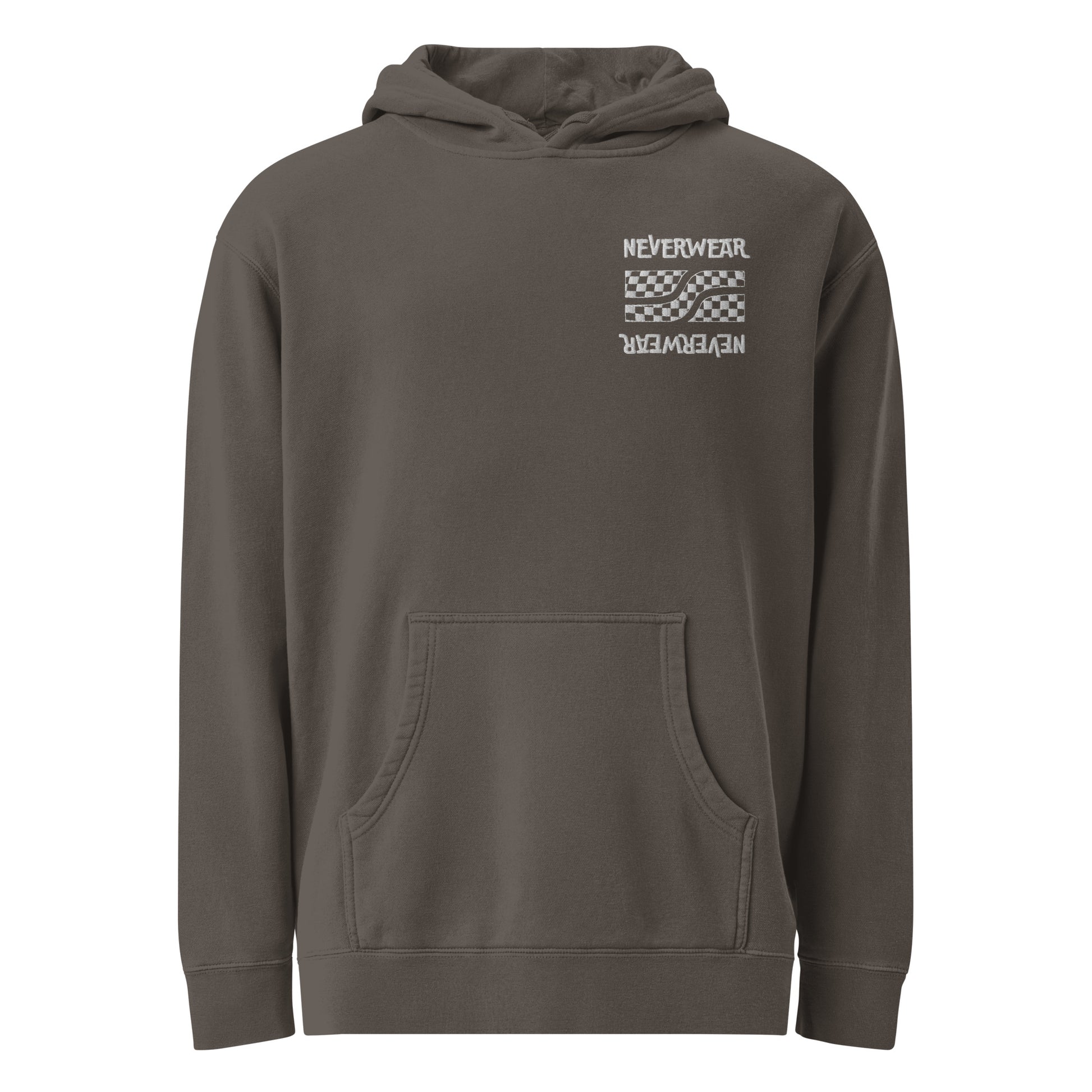 Mid-weight, faded, pigment-dyed hoodie. It has a washed-out look that’s been achieved by pigment-dyeing the garment. The coloring process ensures a unique shade for the hoodie, making each item a one-of-a-kind.